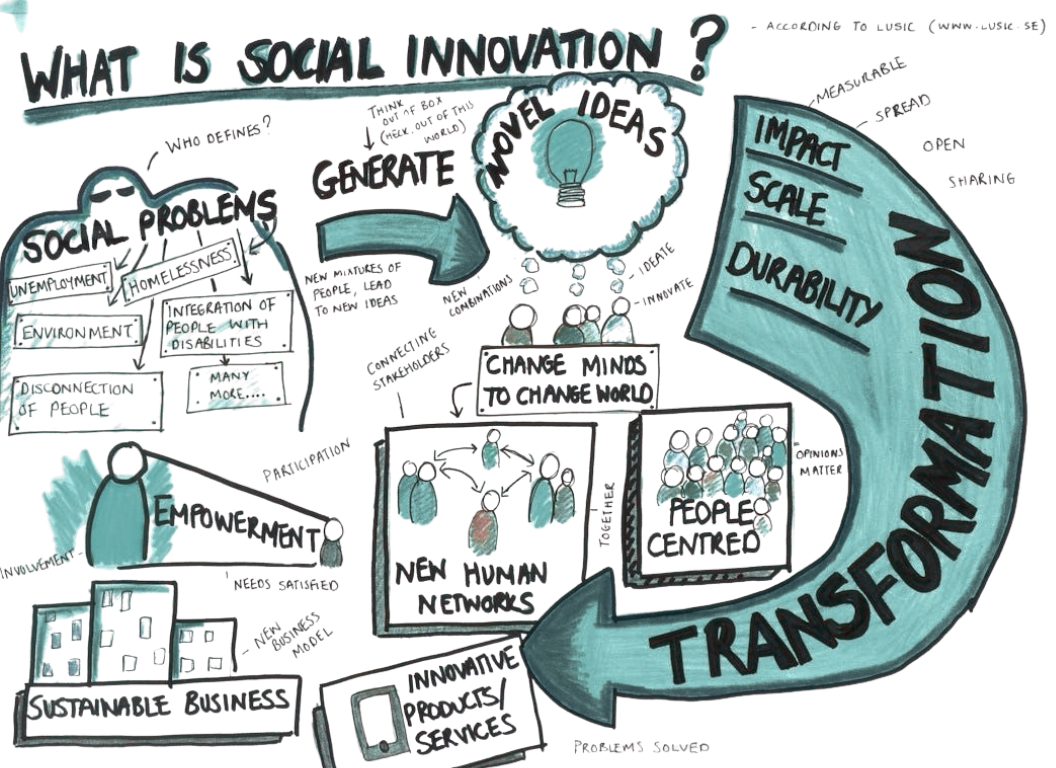Social innovation means developing new ideas, services, or models that address social challenges more effectively than existing solutions. It brings together people from different sectors to create change in areas like education, employment, environment, and social inclusion.